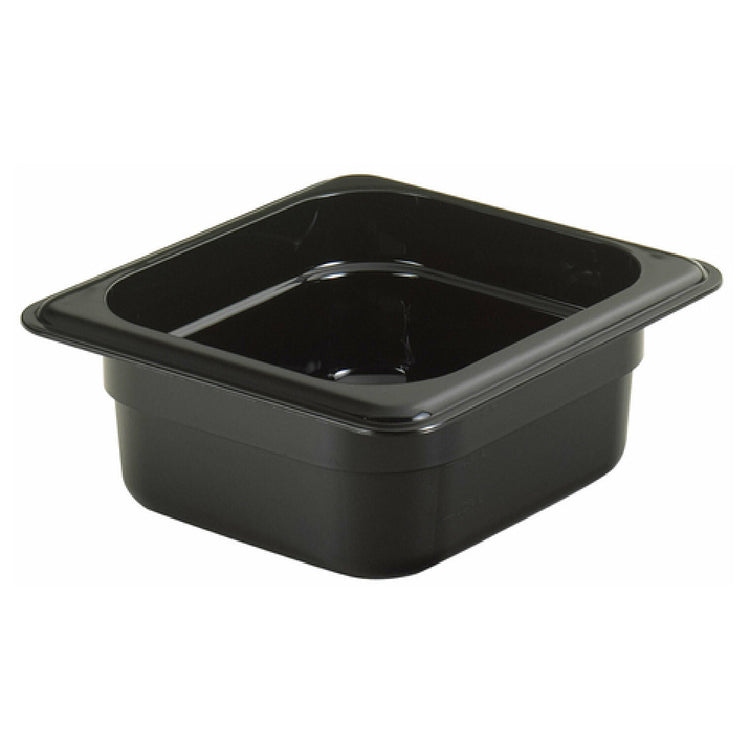 The Cambro 62HP110 H-Pan™ High Heat Hot Food Pan 1-6 Size 2-1/2" Deep is an essential tool for any food service operation requiring reliable and efficient food holding solutions. Constructed from high-temperature plastic, this pan is designed to withstand temperatures ranging from -40°F to 375°F, making it suitable for both hot and cold food storage. Its non-stick surface ensures easy food release and cleaning, enhancing operational efficiency. The pan's resilience is highlighted by its resistance to bending or denting, ensuring durability in high-demand environments. With its 1-6 size and 2-1/2" depth, this pan is versatile enough to accommodate a variety of food items, optimizing space in warming units or refrigerated displays. Available in a sleek black color, it adds a professional aesthetic to any kitchen setup. Furthermore, the Cambro 62HP110 is NSF certified, guaranteeing it meets stringent public health and safety standards, making it a trustworthy choice for commercial kitchens, catering businesses, and institutional dining facilities. This high heat pan stands out for its robustness and reliability, catering to diverse market segments where maintaining food quality and safety is paramount.