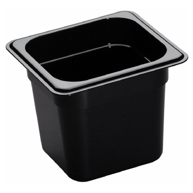 The Cambro 66HP110 H-Pan™ High Heat Hot Food Pan is a versatile and durable solution designed for efficient food service operations. This pan measures 1/6 size and is 6 inches deep, providing ample capacity for a variety of food items. Constructed from high-temperature plastic, it is capable of withstanding a wide temperature range from -40°F to 375°F, making it suitable for both hot and cold applications. The pan features a non-stick surface, ensuring easy release of food and simplifying the cleaning process. Its robust construction means it won't bend or dent, offering long-lasting performance in busy kitchen environments. The pan comes in a sleek black color, adding a professional aesthetic to any food presentation. Additionally, it holds an NSF certification, confirming its compliance with public health and safety standards. This high-heat food pan is an ideal choice for different segments within the food industry, including restaurants, catering services, and institutional kitchens, where reliability and durability are paramount. The Cambro 66HP110 H-Pan is engineered to meet the demanding needs of food service professionals, providing a practical and efficient solution for hot food storage and presentation.