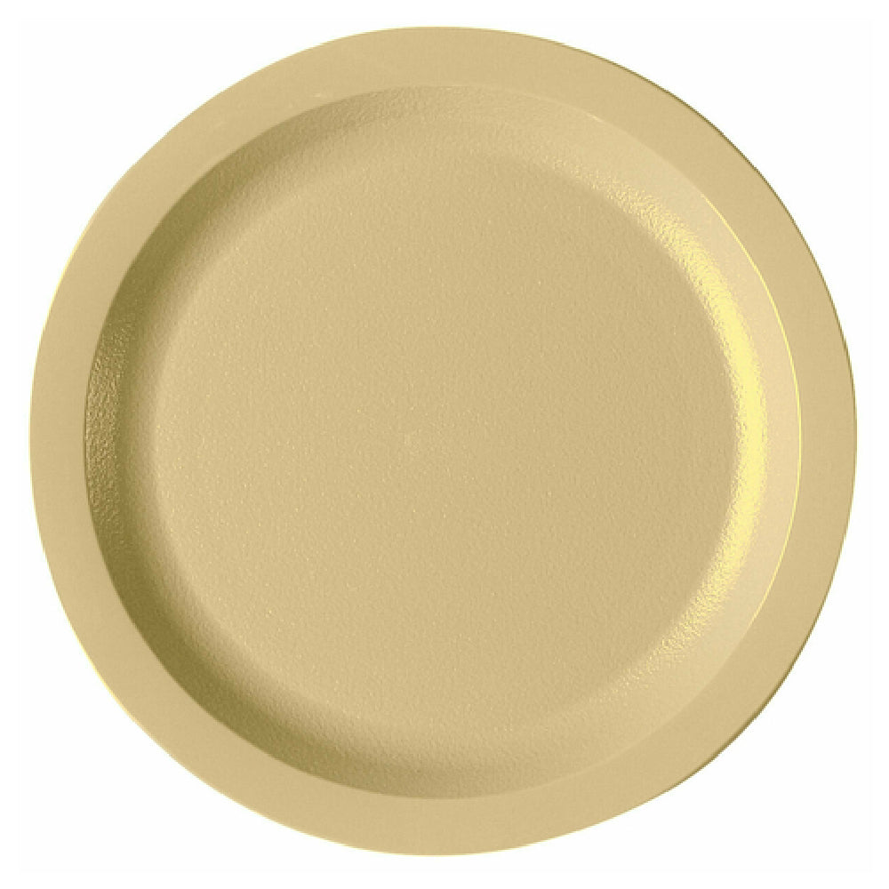 The Cambro 725CWNR133 Camwear® Plate is a meticulously designed dining solution, embodying a 7-1/4" diameter with a narrow rim, making it a compact yet stylish addition to any food service setting. This plate is constructed from robust polycarbonate, ensuring a durable, non-porous surface that is both scratch-resistant and easy to maintain, thanks to its smooth, glossy finish. The textured surface enhances grip and handling, which is essential for high-traffic environments in the food service industry. Available in an elegant beige color, this plate seamlessly integrates into various table settings, offering versatility across different market segments, from casual dining to upscale catering services. The plate's NSF certification guarantees compliance with rigorous health and safety standards, emphasizing its suitability for professional use. Its unique combination of durability, aesthetic appeal, and practicality makes the Cambro 725CWNR133 an invaluable asset, poised to elevate dining experiences while ensuring longevity and reliability for restaurants, cafeterias, and hospitality venues alike.