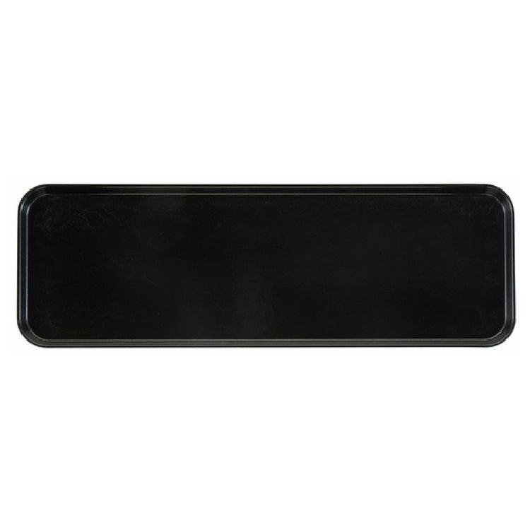 The Cambro 826MT110 Market Display Tray is a versatile rectangular tray with dimensions of 8-1/4 inches by 25-1/2 inches by 3/4 inch, designed to meet the diverse needs of food service operations. Constructed from durable fiberglass, this tray is dishwasher safe, ensuring ease of maintenance and longevity in high-traffic environments. Its sleek black finish provides a sophisticated presentation platform, ideal for showcasing an array of products. The tray's NSF certification highlights its compliance with stringent public health and safety standards, making it suitable for use in professional kitchen and catering settings. Whether utilized in a bustling marketplace, a cafeteria, or a high-end restaurant, the Cambro 826MT110 tray offers a reliable and attractive solution for displaying food items with style and efficiency. Its robust material and design accommodate the demanding conditions of daily use, providing a stable and easy-to-clean surface. This market display tray stands as a testament to Cambro's commitment to quality and functionality, ensuring that food presentation is both practical and aesthetically pleasing across various industry segments.