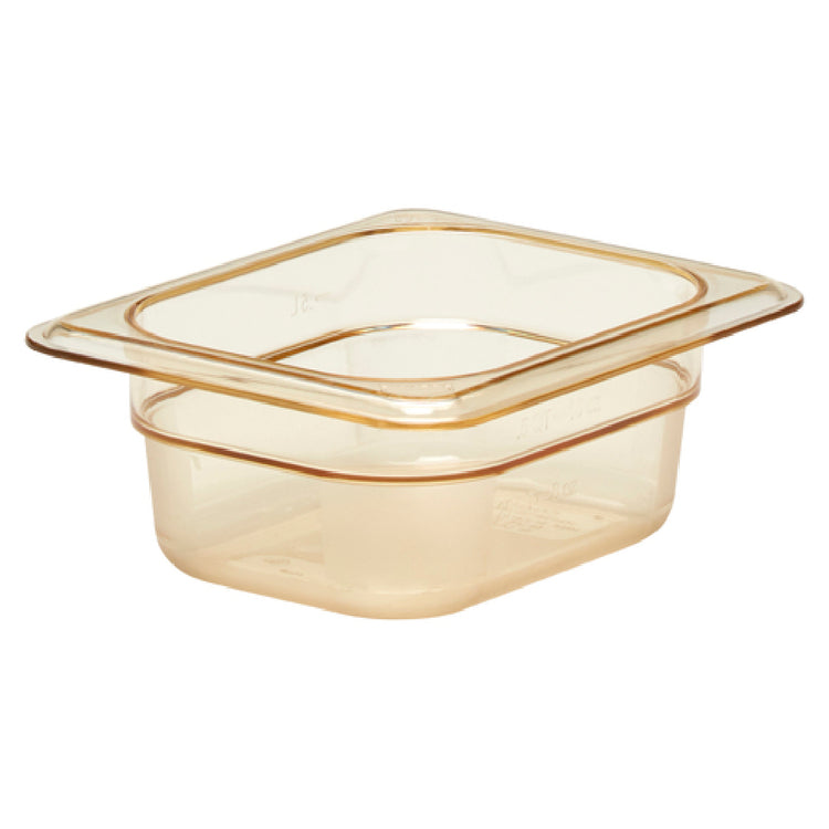 The Cambro 82HP150 H-Pan™ High Heat Hot Food Pan is meticulously crafted for the rigorous demands of food service environments, offering a compact 1/8 size with a 2-1/2" depth, making it ideal for diverse culinary applications. Engineered to withstand temperatures ranging from -40°F to 375°F, this versatile pan seamlessly transitions from freezer to oven, embodying high durability and flexibility. The hi-temp plastic construction not only ensures longevity by resisting bending or denting but also features a non-stick surface that enhances food release and simplifies cleanup. Presented in an elegant amber hue, it adds a touch of style while maintaining functionality. The Cambro 82HP150 pan is NSF certified, affirming its adherence to robust public health and safety standards, making it a trusted choice for restaurants, catering services, and institutional kitchens. This pan represents a unique value proposition by effectively balancing durability and performance, making it indispensable for chefs and food service professionals who demand reliability and efficiency in high-heat applications.
