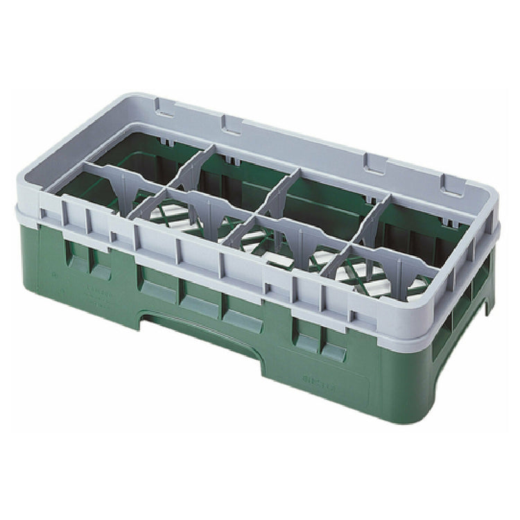 The Cambro 8HS318119 Camrack® Glass Rack With Soft Gray Extender Half Size is a practical solution for businesses seeking efficient glassware storage. This half-size rack measures 10 inches by 19-3/4 inches by 5-5/8 inches, making it suitable for compact storage spaces. It features eight compartments, each accommodating a maximum diameter of 4-1/16 inches and a maximum height of 3-5/8 inches, providing ample room for various glass sizes. The inclusion of a soft gray extender enhances its versatility, allowing for optimal space management. The Sherwood green color adds a visually appealing touch to any kitchen or bar setting. Notably, this glass rack is HACCP compliant, ensuring it meets crucial food safety and hygiene standards. Additionally, the NSF certification underscores its commitment to quality and safety in commercial environments. Ideal for restaurants, bars, and catering services, the Cambro 8HS318119 Camrack® Glass Rack combines functionality with robust design, offering reliable support for glass storage needs across different segments of the food and beverage industry.