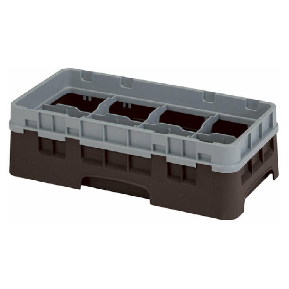 The Cambro 8HS318167 Camrack® Glass Rack With Soft Gray Extender Half Size is a specialized storage solution designed to provide efficient and safe handling of glassware in various industrial settings. Measuring 10" x 19-3/4" x 5-5/8", this half-size rack is engineered with eight compartments, accommodating glassware with a maximum diameter of 4-1/16" and a maximum height of 3-5/8". Its unique design includes a soft gray extender that enhances the protection and stability of stored items, making it an ideal choice for businesses requiring meticulous glassware care, such as restaurants, hotels, and catering services. The brown color adds a professional aesthetic to its practical benefits. Complying with HACCP standards, this glass rack supports food safety practices, ensuring hygiene compliance in food service environments. Furthermore, the NSF certification guarantees that it meets strict public health and safety guidelines. The Cambro 8HS318167 Camrack® is crafted for durability and ease of use, serving diverse market segments that prioritize quality and safety in their operations. This product's technical specifications and design make it an essential tool for efficient glassware management, promoting productivity and reliability in high-demand service industries.