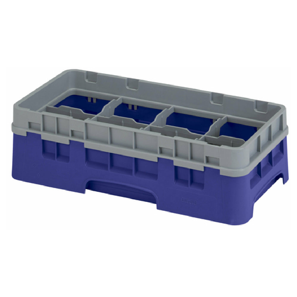 The Cambro 8HS318186 Camrack® Glass Rack With Soft Gray Extender Half Size is an expertly designed solution for efficient glassware storage and transportation, tailored for various sectors within the hospitality industry. Measuring 10" x 19-3/4" x 5-5/8", this half-size rack features eight compartments, each accommodating a maximum diameter of 4-1/16" and a maximum height of 3-5/8". Its ergonomic design is enhanced by the inclusion of a soft gray extender, providing additional support and stability during handling. The product's navy blue finish not only adds a touch of elegance but also signifies its compliance with HACCP standards, ensuring hygienic and safe operations. Furthermore, it is NSF certified, attesting to its adherence to rigorous health and safety benchmarks. This glass rack is especially beneficial for restaurants, bars, and catering services that demand efficient, reliable, and hygienic glassware management. Its carefully considered dimensions and superior material construction make it a robust choice for establishments where cleanliness and practicality are paramount. The Cambro 8HS318186 Camrack® stands out as a versatile and essential tool for maintaining the highest standards of glassware care and organization in any professional setting.