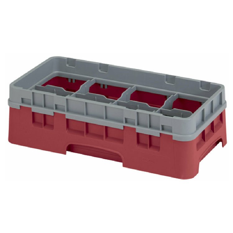 The Cambro 8HS318416 Camrack® Glass Rack With Soft Gray Extender Half Size is an innovative solution designed to meet diverse glassware storage needs across various segments of the foodservice industry. This compact yet efficient rack measures 10 inches by 19-3/4 inches by 5-5/8 inches, making it a space-saving option for establishments with limited storage areas. Featuring eight compartments, it accommodates glassware with a maximum diameter of 4-1/16 inches and a maximum height of 3-5/8 inches. The soft gray extender adds an additional layer of protection and stability, ensuring that glassware remains secure during storage and transport. The rack's cranberry color is not just visually appealing but also enhances sorting and organization. As a HACCP compliant and NSF certified product, it adheres to stringent health and safety standards, making it a reliable choice for restaurants, bars, and catering services. The Cambro Camrack's practical design and durability make it a valuable asset for any operation requiring efficient glassware management. Its thoughtful engineering and compliance with industry standards underscore its commitment to safety and functionality, providing users with a trusted solution for their glassware handling and organizational needs.