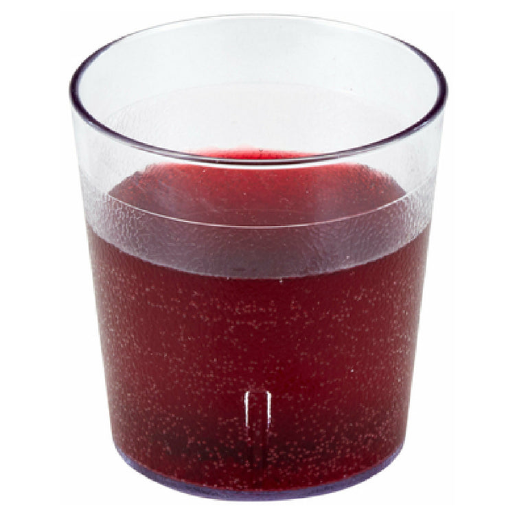 The Cambro 900P152 Colorware Tumbler is an expertly crafted drinking vessel with a capacity of 9.7 oz. and a top diameter of 3-3/16", perfectly suited for a variety of settings from casual dining establishments to institutional food service environments. This tumbler is distinguished by its impact-resistant construction, making it a durable choice for high-traffic areas where longevity is paramount. Designed with convenience in mind, it features interior stacking lugs that facilitate compact storage and efficient space utilization. The tumbler's textured exterior not only enhances its aesthetic appeal but also resists scratching, ensuring a longer lifespan and maintaining its clarity over time. The Sani-Rim lip design adds a touch of hygiene to the design, promoting a cleaner drinking experience. Made from SAN material, this clear tumbler is dishwasher safe, adding to its practicality and ease of maintenance. The Cambro 900P152 is sold by the case, with each order containing 72 tumblers, catering to establishments requiring larger quantities. This tumbler's combination of durability, practicality, and design makes it an essential item for businesses seeking reliable and efficient drinkware solutions.