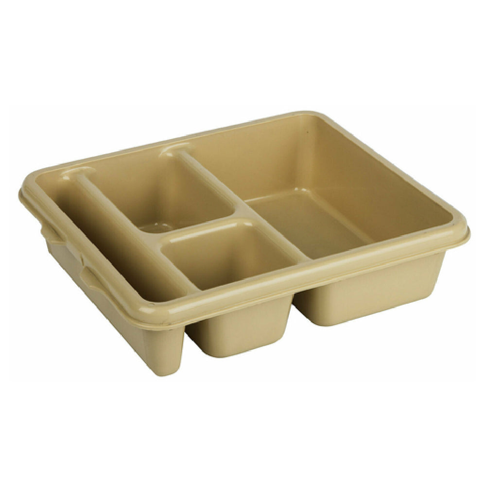 The Cambro 9114CP161 Meal Delivery Tray is an expertly designed solution for efficient food service, featuring four distinct compartments to conveniently separate different meal components. Measuring 8-15/16 inches by 10-3/4 inches with a depth of 2-5/8 inches, this tray provides ample space for balanced meal portions. The tray's textured surface enhances grip, reducing the risk of spills during transit, making it ideal for healthcare facilities, schools, and correctional institutions where secure and hygienic meal delivery is paramount. Constructed from durable co-polymer material, the Cambro 9114CP161 ensures long-lasting performance even in high-traffic environments. Its dishwasher-safe feature facilitates easy cleaning, supporting rigorous sanitation standards. Available in a neutral tan color, this meal delivery tray integrates seamlessly into various dining settings. With its robust design and practical size, the Cambro 9114CP161 Meal Delivery Tray is tailored to meet the needs of diverse food service applications, offering reliability for institutions where meal service efficiency and hygiene are critical.