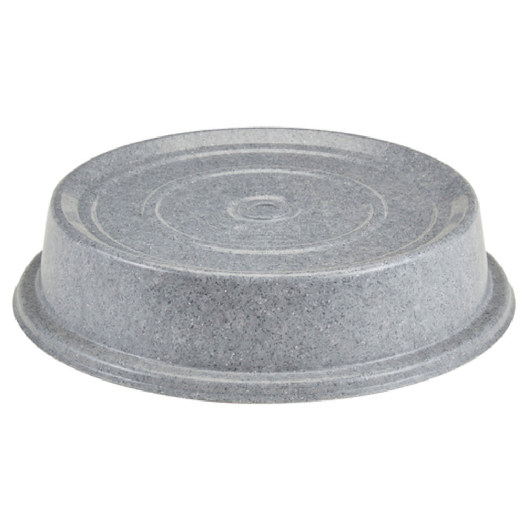 The Cambro 91VSNH191 Versa Camcover® Plate Cover - 9-1/8" Dia. Inside 2-11/16"H Outside is a versatile and essential accessory for the food service industry. This round plate cover is meticulously crafted without a ventilation hole, making it perfect for retaining heat and maintaining the ideal serving temperature of dishes. It is able to withstand temperatures up to 300°F or 149°C, ensuring its reliability in various culinary environments. The cover's lightweight design combined with its dent and stain-resistant properties makes it an excellent choice for busy kitchens that require durable and long-lasting equipment. Made from high-quality fiberglass, this plate cover is not only odor-free but also dishwasher safe, adding convenience for large-scale operations. Its granite gray color ensures a sleek and professional appearance, aligning with the aesthetics of modern dining establishments. The Cambro 91VSNH191 Versa Camcover is NSF certified, signifying adherence to public health and safety standards, thereby offering confidence and peace of mind to professionals in the catering and hospitality sectors. Suitable for a minimum order of 144, it is ideal for large venues that require consistent and efficient service. Whether in hotels, restaurants, or catering services, this plate cover meets the demands of different market segments with its robustness and functionality.