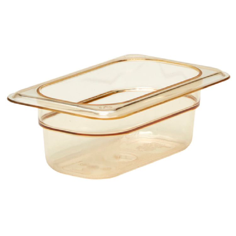 The Cambro 92HP150 H-Pan™ High Heat Hot Food Pan is a versatile solution designed for rigorous kitchen environments, especially ideal for establishments dealing with a variety of high-temperature culinary tasks. This 1/9 size pan, with a depth of 2-1/2 inches, is constructed from high-temperature plastic, allowing it to withstand temperatures ranging from -40°F to 375°F. The material's non-stick surface ensures easy food release, minimizing food waste and making cleaning effortless. Notably, the pan's construction prevents bending or denting, providing a longer service life even under constant use. Its amber color provides a unique visual appeal while allowing for quick identification in a busy kitchen setting. The pan's NSF certification confirms its compliance with stringent public health and safety standards, making it a trusted choice for professional chefs and food service operators. Its compact 1/9 size is perfect for portion control and is compatible with a variety of gastronorm systems, offering flexibility and adaptability across different culinary applications. Whether in a bustling restaurant, catering service, or institutional kitchen, the Cambro 92HP150 H-Pan™ delivers reliable performance with the durability and ease of use that are essential in high-demand food service settings.