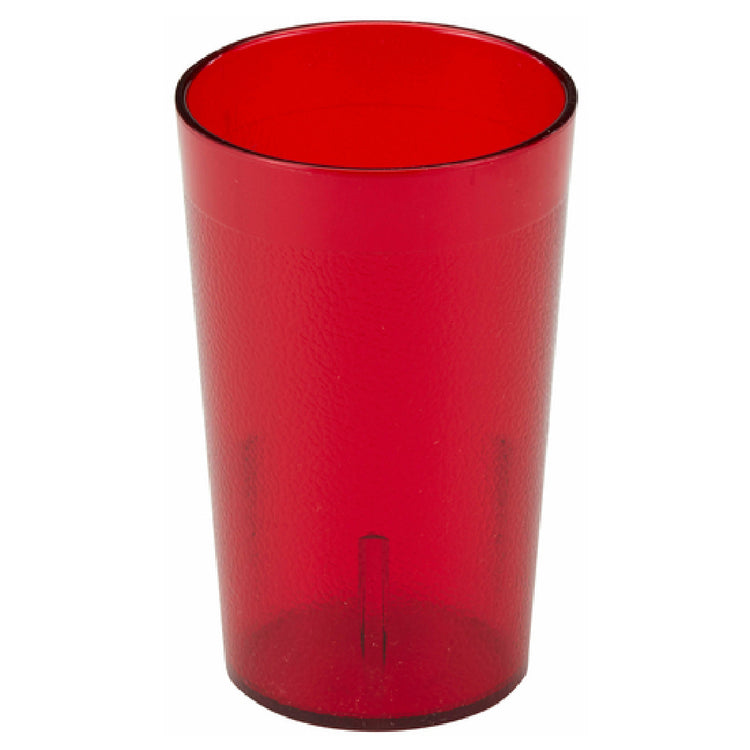 The Cambro 950P2156 Colorware Tumbler is a versatile drinking vessel with a capacity of 9.8 ounces, making it a popular choice for various dining settings, from casual eateries to institutional cafeterias. With a top diameter of 2-3/4 inches, this tumbler is designed for easy handling and storage. Its impact-resistant construction ensures durability, while the interior stacking lugs facilitate efficient storage and transportation, especially in high-volume environments. The textured exterior contributes to a secure grip, making it user-friendly, and it resists scratching, maintaining its visual appeal over time. Featuring the Sani-Rim Lip, this tumbler prioritizes hygiene, an essential feature for food and beverage industries. Dishwasher safe, it supports quick and convenient cleaning, ideal for fast-paced service settings. Made from SAN, a material known for its strength and clarity, the tumbler comes in a vibrant ruby red color, adding a touch of style to any table setting. This product is sold in full cases of 24, catering to the needs of businesses requiring bulk purchases, such as hotels, restaurants, and catering services, offering both functionality and aesthetic appeal.