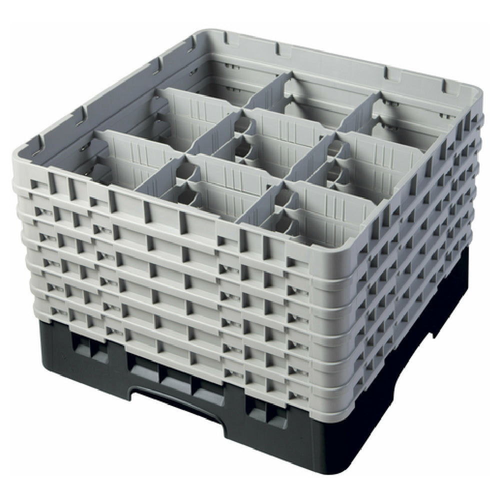 The Cambro 9S1114110 Camrack® Glass Rack With (6) Soft Gray Extenders Full Size is an essential component for efficient glassware management in a variety of professional settings. This product is meticulously designed with a full-size dimension of 19-3/4" x 19-3/4" x 13-3/4", effectively accommodating diverse glassware needs. It features nine compartments, each providing a maximum diameter capacity of 5-7/8" and a maximum height of 11-3/4", making it suitable for storing a range of glass sizes securely. The inclusion of six soft gray extenders enhances its versatility by allowing for customized height adjustments, catering to different glassware dimensions. The rack's black color not only adds a sleek aesthetic but also ensures easy identification and organization. Compliant with HACCP standards, it guarantees a safe and hygienic handling process, essential for maintaining health safety standards in food service industries. Additionally, the NSF certification underscores its adherence to strict public health and safety criteria, making it a reliable choice for restaurants, bars, and catering services. The Cambro 9S1114110 Camrack® Glass Rack is engineered for durability and efficiency, making it an indispensable tool for optimizing glassware storage and transport in commercial kitchens and hospitality environments.