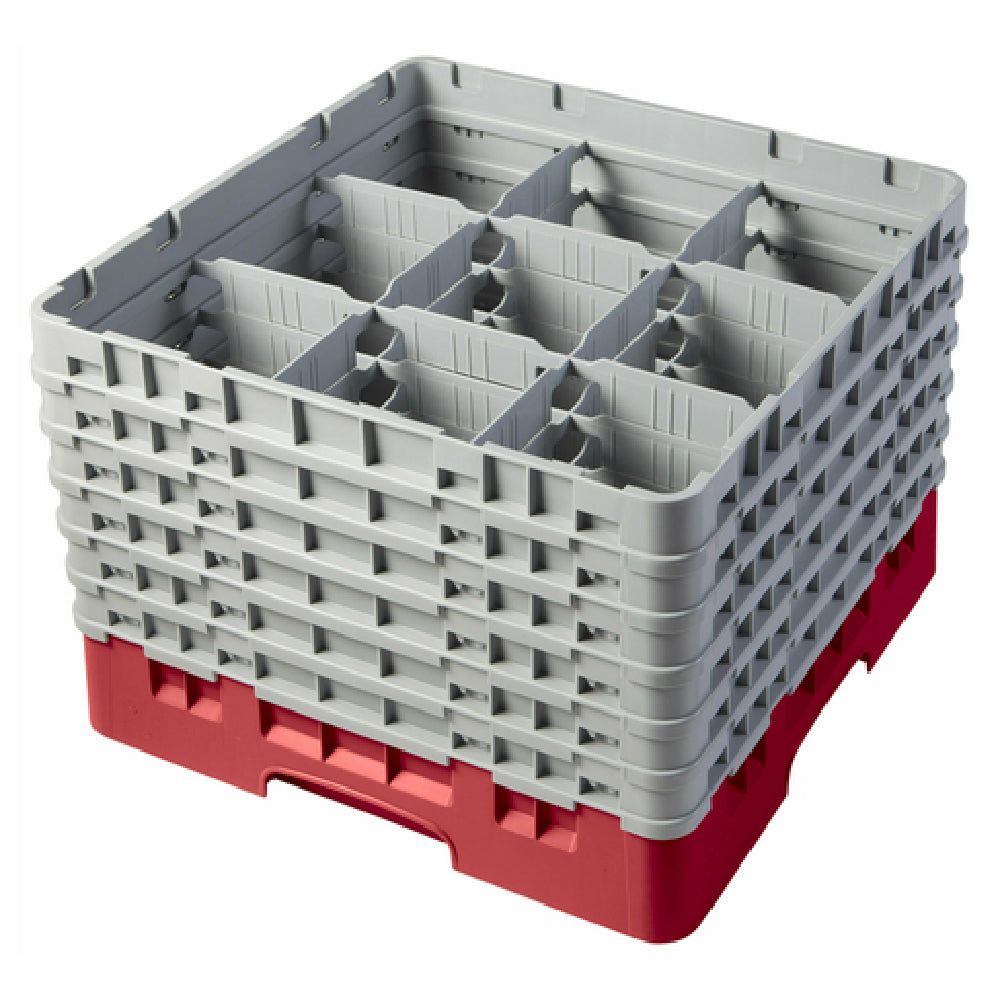 The Cambro 9S1114163 Camrack® Glass Rack with (6) Soft Gray Extenders is a full-size solution tailored for the efficient handling and protection of glassware in commercial settings. Measuring 19-3/4" x 19-3/4" x 13-3/4", this rack is engineered with (9) compartments, each accommodating a maximum glass diameter of 5-7/8" and a maximum height of 11-3/4". This robust configuration ensures the safe transportation and storage of glassware, minimizing breakage and optimizing space. The inclusion of (6) soft gray extenders provides added height, accommodating taller glassware and enhancing the versatility of the rack system. Its striking red color not only offers a vibrant aesthetic but also ensures easy identification in busy kitchen environments. The Cambro 9S1114163 Camrack® is both HACCP compliant and NSF certified, emphasizing its adherence to strict hygiene and safety standards critical in the foodservice and hospitality sectors. This glass rack is particularly valuable for operators in restaurants, hotels, and catering services who demand reliability and efficiency in glassware management. Its thoughtful design and durable construction make it an essential tool for maintaining organization and operational excellence in any high-volume glassware handling scenario.
