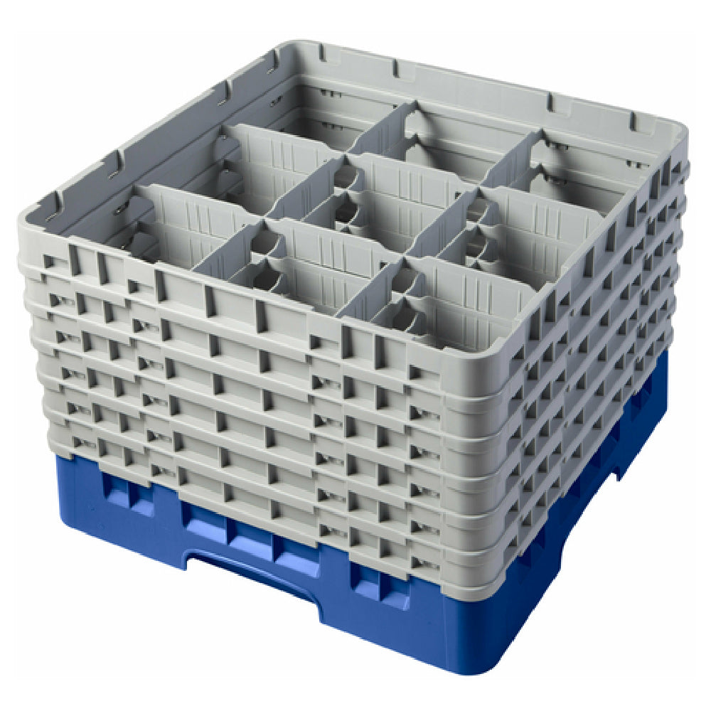 The Cambro 9S1114168 Camrack® Glass Rack With (6) Soft Gray Extenders Full Size is an expertly designed storage solution tailored for professionals in the foodservice and hospitality industries. With dimensions of 19-3/4" x 19-3/4" x 13-3/4", this glass rack boasts a full-size framework that is both spacious and efficient for handling. It features nine compartments, each accommodating a maximum glass diameter of 5-7/8" and a height of up to 11-3/4". The rack is equipped with six soft gray extenders, enhancing its capacity and flexibility to cater to varying glass sizes. Its blue color not only provides a distinctive aesthetic but also aligns with industry standards for easy identification and sorting. As a HACCP compliant and NSF certified product, it ensures adherence to food safety and public health regulations, which is crucial for maintaining stringent hygiene practices. The Cambro Camrack® is an invaluable asset for any operation looking to optimize glassware storage while ensuring easy cleaning and organization. Its robust construction and compliance with industry standards underscore its reliability and functionality, making it suitable for diverse market segments such as restaurants, bars, catering services, and more.