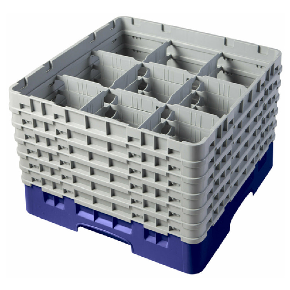 The Cambro 9S1114186 Camrack® Glass Rack with (6) soft gray extenders is a full-size glass rack known for its efficiency and reliability in professional settings. Measuring 19-3/4" x 19-3/4" x 13-3/4", this rack is designed to maximize storage with its (9) compartments, accommodating glasses up to a maximum diameter of 5-7/8" and a height of 11-3/4". The navy blue rack is both HACCP compliant and NSF certified, ensuring it meets industry standards for safety and sanitation. The inclusion of six soft gray extenders allows for adjustable stacking, catering to varying glass sizes and optimizing space utilization. This makes the Cambro Camrack® an invaluable asset for restaurants, caterers, and hospitality venues looking to maintain cleanliness and organization while ensuring the protection of glassware during transport and storage. Its robust construction and thoughtful design contribute to a more efficient workflow in any glass-handling scenario.