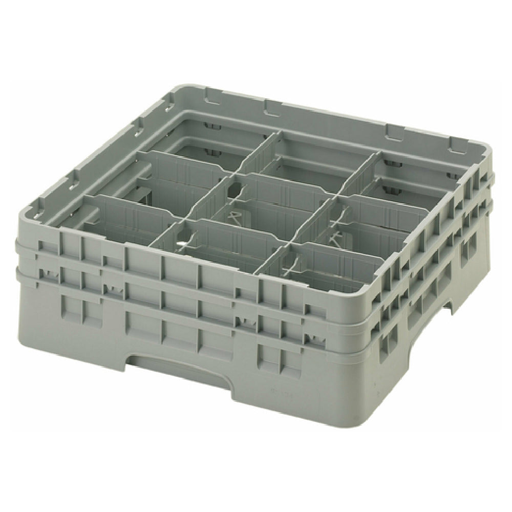 The Cambro 9S434151 Camrack® Glass Rack with (2) Soft Gray Extenders Full Size is an essential tool for efficiently organizing and storing glassware in various professional settings. Measuring 19-3/4" x 19-3/4" x 7-1/4", this glass rack is designed to accommodate a wide range of glass types with its nine spacious compartments. Each compartment can comfortably hold glasses with a maximum diameter of 5-7/8" and a maximum height of 5-1/4", ensuring versatile utility for different glassware sizes. The inclusion of two soft gray extenders enhances the rack's capacity, providing additional layers of protection and stability for stored items. The rack's soft gray color not only offers a clean and professional appearance but also facilitates easy identification of its contents. Its HACCP compliance underscores its suitability for maintaining hygiene standards in food service environments, while the NSF certification assures users of its adherence to public health and safety regulations. This full-size glass rack is an ideal choice for restaurants, hotels, and catering services seeking a reliable and durable solution for glassware management, emphasizing functionality and quality in professional settings.
