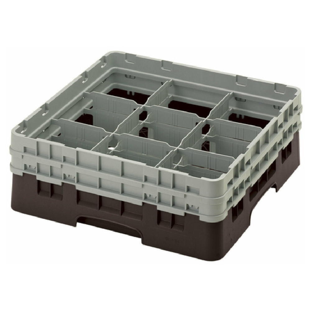 The Cambro 9S434167 Camrack® Glass Rack with (2) soft gray extenders is a full-size rack designed for efficient and organized storage of glassware. Its dimensions are 19-3/4" x 19-3/4" x 7-1/4", offering a robust solution for catering and hospitality sectors that demand reliable glassware management. This glass rack features nine compartments, each capable of accommodating glasses with a maximum diameter of 5-7/8" and a maximum height of 5-1/4". The inclusion of two soft gray extenders enhances its capacity, providing versatility for various glass sizes and shapes. The rack is finished in a brown color, offering a professional appearance that complements many commercial kitchen environments. Certified as HACCP compliant and NSF certified, the Cambro 9S434167 ensures adherence to essential health and safety standards, making it a trusted choice for establishments prioritizing hygiene and safety. The thoughtful engineering of this glass rack, combined with its practical dimensions and certifications, makes it an ideal choice for restaurants, bars, and catering services looking to optimize their glassware storage solutions. Its design facilitates not only organization but also easy cleaning and maintenance, thereby enhancing operational efficiency in fast-paced service settings.