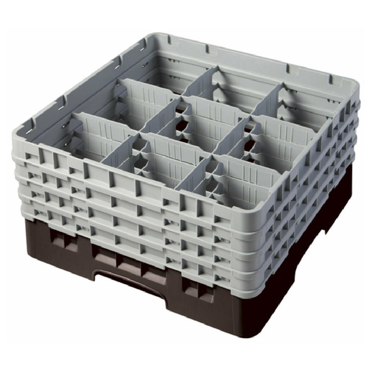 The Cambro 9S800167 Camrack® Glass Rack with (4) soft gray extenders is a full-size solution designed to meet the demanding needs of various segments within the food service industry. Measuring 19-3/4" x 19-3/4" x 10-1/2", this glass rack is equipped with nine compartments, each accommodating a maximum diameter of 5-7/8" and a maximum height of 8-1/2", making it an ideal choice for securely storing and transporting a variety of glassware sizes. Constructed in a distinctive brown color, this rack is not only visually appealing but also HACCP compliant, ensuring adherence to food safety standards. Its NSF certification further underscores its compliance with public health and safety regulations. The inclusion of four soft gray extenders enhances its versatility, allowing it to adapt to different glassware heights and ensuring stability during transport. This product is engineered to provide reliable performance in busy environments such as restaurants, catering services, and hospitality venues, where efficiency and safety are paramount. The Cambro 9S800167 Camrack® Glass Rack seamlessly combines functionality with quality, making it an essential tool for professionals seeking a dependable solution for glassware organization and protection.