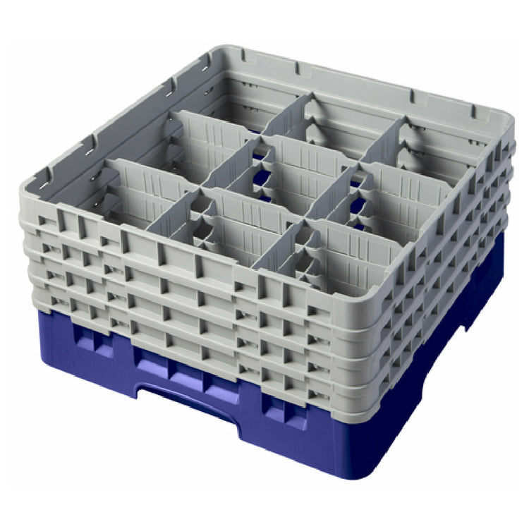The Cambro 9S800186 Camrack® Glass Rack is a full-size solution measuring 19-3/4" x 19-3/4" x 10-1/2", designed for efficient glass storage and transport in various industry segments, including catering, hospitality, and food service. With its nine compartments, this rack accommodates glasses with a maximum diameter of 5-7/8" and a maximum height of 8-1/2", ensuring versatility for a range of glass sizes. This model features four soft gray extenders, enhancing its capacity and allowing for easy stacking to save space. Its navy-blue construction complements modern kitchen aesthetics while ensuring durability and long-term usability. The Cambro 9S800186 is HACCP compliant, supporting food safety management by effectively minimizing contamination risks. Additionally, its NSF certification signifies adherence to public health standards, providing peace of mind to professionals who prioritize hygiene and safety in their operations. This glass rack is an essential asset for businesses aiming to maintain high standards of cleanliness and efficiency, making it a valuable addition to any commercial kitchen or catering equipment lineup.