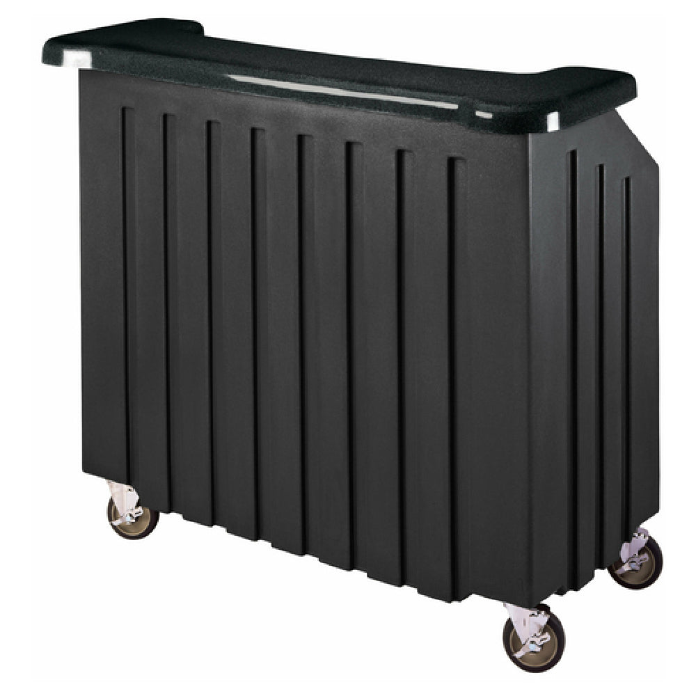 The Cambro BAR540DS670 Cambar® Portable Bar is a versatile solution designed for diverse market segments within the hospitality and events industry. Measuring 54"L x 25-7/8"W x 46-1/8"H, this portable bar is engineered with a black base and coal-colored decorative countertop, providing a stylish and functional centerpiece for any setting. It features a 100 lb. ice sink complete with a drain, ensuring efficient ice management and quick clean-up. The removable 5-bottle speed rail and top shelf cater to dynamic service needs, offering adaptability for various beverage setups. Constructed from durable polyethylene, this portable bar is built to withstand demanding environments while maintaining its sleek appearance. The inclusion of a vinyl cover adds an extra layer of protection during storage or transport. Equipped with four 5" swivel casters with brakes, mobility and stability are effortlessly achieved, allowing for seamless repositioning across different venues. The Cambro BAR540DS670 Cambar® Portable Bar is an exemplary choice for catering companies, event venues, and hospitality businesses seeking a reliable and flexible bar solution that combines practicality with elegance.