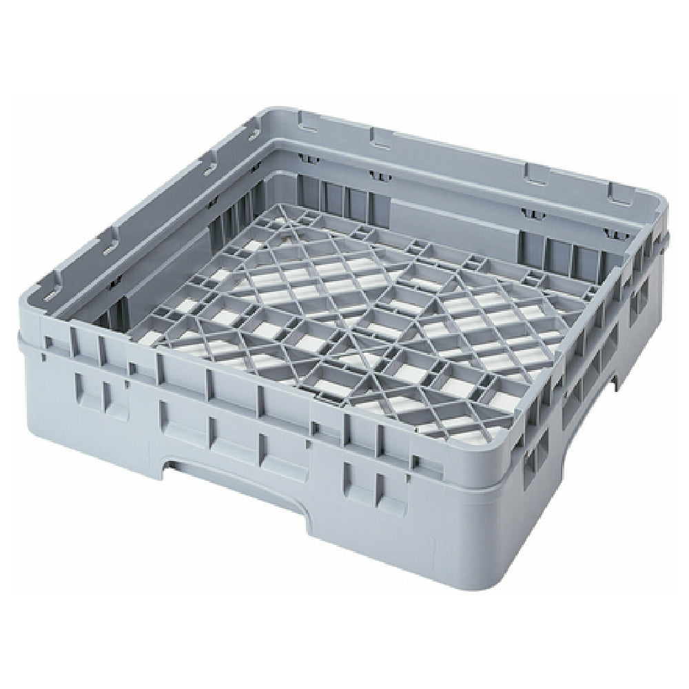 The Cambro BR414151 Camrack® Base Rack with Soft Gray Extender Full Size is expertly engineered to meet the rigorous demands of commercial kitchens and food service operations. This full-sized rack features a single compartment and precise dimensions of 19-3/4 inches by 19-3/4 inches, optimizing space for efficient storage and transport. With an interior rack height of 4-7/8 inches and an inside stack height of 4-1/4 inches, it is designed to accommodate various items while ensuring stability during stacking. Constructed from durable polypropylene, the rack is both resilient and lightweight, facilitating ease of handling. The soft gray color of the extender not only provides a sleek aesthetic but also aids in identifying and differentiating racks within a busy kitchen environment. NSF certification highlights its adherence to essential public health and safety standards, making it a trustworthy choice for professionals. The Cambro BR414151 Camrack® is particularly beneficial for hotels, catering services, and restaurants, offering reliable solutions for dishware management and storage. Its thoughtful design integrates seamlessly into existing workflows, supporting the operational efficiency and organizational needs of diverse culinary settings.