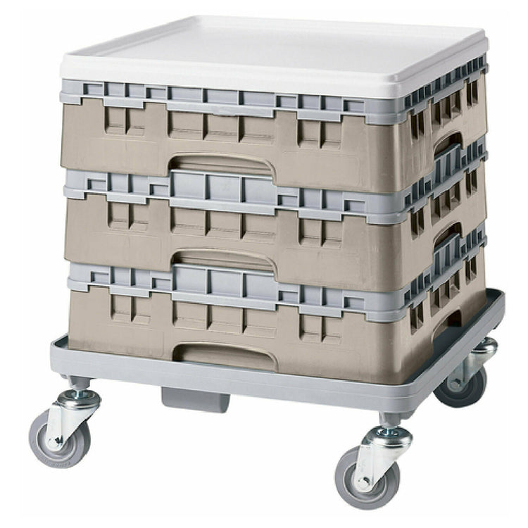 The Cambro BR414184 Camrack® Base Rack with Soft Gray Extender Full Size is a versatile and essential solution for the meticulous organization and transportation of dishware in commercial kitchens. Featuring a single compartment design, this full-size rack measures an accommodating 19-3/4 inches by 19-3/4 inches, providing ample space for various dishwash needs. The rack boasts an inside rack height of 4-7/8 inches and an inside stack height of 4-1/4 inches, optimizing efficient storage while maintaining the integrity of the items contained within. Constructed from durable polypropylene, this beige-colored base rack ensures lasting performance and is built to withstand the rigors of daily use. Its soft gray extender further enhances its utility by allowing for the secure stacking of additional racks, streamlining storage and transport processes. The rack is NSF certified, emphasizing its compliance with high standards of public health and safety. Ideal for a variety of market segments within the foodservice industry, from bustling restaurants to institutional cafeterias, the Cambro BR414184 Camrack® Base Rack exemplifies practicality and reliability, ensuring kitchen operations run smoothly and efficiently.