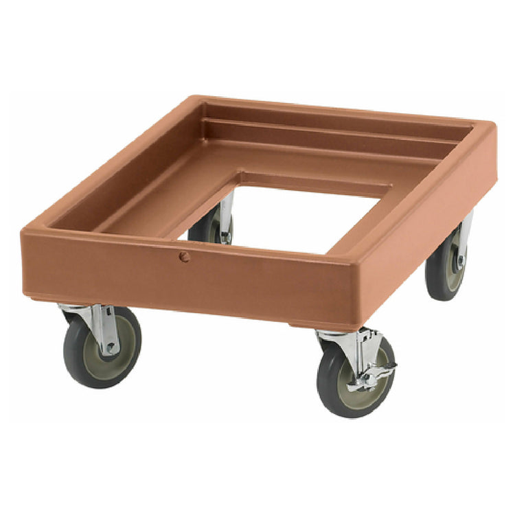 The Cambro CD100157 Camdolly® is a versatile and essential tool for efficient transport, specifically designed with a focus on both durability and ease of use. Featuring exterior dimensions of 28-5/8 inches in length, 19-5/8 inches in width, and 10-1/2 inches in height, it is compact yet capable of handling significant loads. With a load capacity of 300 lbs., this Camdolly® is ideal for a variety of commercial environments, including food service operations and catering events. Equipped with 5-inch casters, it offers a combination of two fixed and two swivel wheels, with one featuring a brake for added control and safety during movement. Its coffee beige color provides a neutral and professional appearance suitable for various settings. Additionally, the inclusion of NSF certification highlights its compliance with high standards of public health and safety. The Cambro CD100157 Camdolly® is an indispensable asset for businesses requiring reliable and efficient transport solutions, offering both practicality and compliance with industry standards.