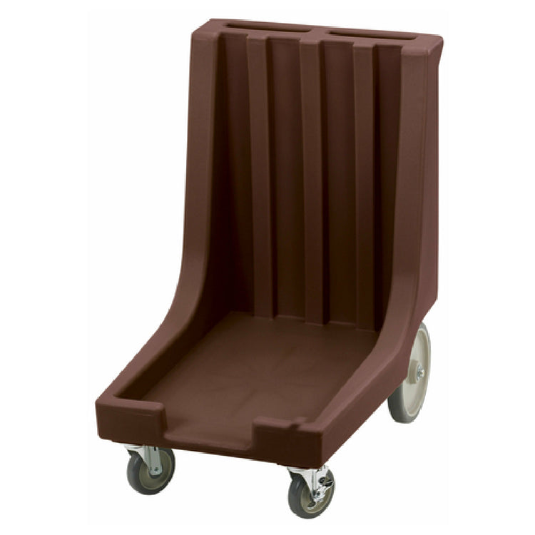 The Cambro CD1826HB131 Camdolly® With Handle is a versatile transport solution specifically designed for heavy-duty use in food service and catering environments. With exterior dimensions measuring 32-1/2"L x 23-1/2"W x 36-1/2"H, this Camdolly® boasts a robust load capacity of 300 lbs., making it an essential tool for efficiently transporting large quantities of goods. Equipped with two rear 10" easy wheels and two 5" swivel casters, including one with a brake, it ensures smooth maneuverability and secure positioning when needed. The inclusion of a handle enhances its ergonomic design, facilitating easy navigation through busy kitchen spaces. Constructed in a dark brown finish, the Camdolly® is not only durable but also visually appealing, fitting seamlessly into a variety of professional settings. NSF certification underscores its compliance with public health standards, making it a reliable choice for institutions where hygiene is paramount. Whether used in large-scale catering operations or busy restaurant kitchens, the Cambro CD1826HB131 Camdolly® provides practical and efficient load transportation, ensuring that it meets the high standards demanded by professionals in the food service industry. Its combination of strength, functionality, and design makes it a valuable asset for any commercial operation.