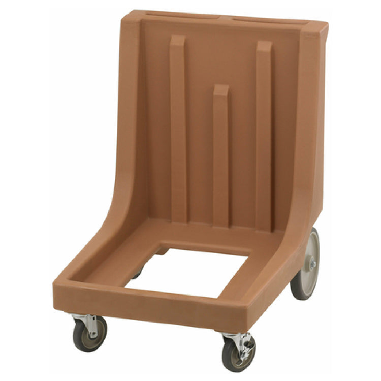 The Cambro CD1826MTCHB157 Camdolly® With Handle - 35"L x 27-5/8"W x 36-3/4"H is a robust and versatile transportation solution for various sectors within the foodservice industry. Designed to support a load capacity of 350 lbs., this Camdolly® is ideal for efficiently moving heavy stacks of trays and containers. Equipped with two rear 10" easy wheels and two 5" swivel casters, including one with a brake, it ensures excellent maneuverability and control, even in confined spaces. The ergonomic handle further enhances user comfort and ease of use. Featuring a coffee beige finish, this dolly is not only functional but also aesthetically pleasing. Its NSF certification guarantees compliance with public health and safety standards, making it a reliable choice for environments that prioritize hygiene and safety. The Cambro CD1826MTCHB157 is engineered to meet the demanding needs of catering companies, institutional kitchens, and logistics in hospitality venues, providing a seamless blend of durability and practicality. Whether transporting trays in a bustling kitchen or facilitating efficient service in a catering setup, this Camdolly® presents a valuable asset with its thoughtful design and quality construction.