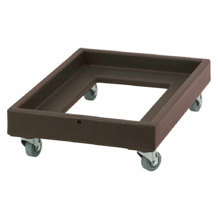 The Cambro CD2028131 Camdolly® is a transport solution engineered for efficiency and durability, boasting exterior dimensions of 30-1/4"L x 21-7/8"W x 8-1/4"H. This versatile dolly is tailored to accommodate #10 can cases and 20" x 28" milk crates, offering a substantial load capacity of 350 lbs. Constructed from robust polyethylene, it ensures longevity and resilience in demanding environments. The dolly is equipped with four 3" heavy-duty swivel casters for seamless maneuverability, although it lacks braking features. Its dark brown finish adds a touch of professionalism, while its NSF certification underscores its compliance with stringent safety and quality standards. The Cambro CD2028131 Camdolly® is an invaluable asset for markets requiring efficient transport and storage of heavy goods, such as food service and warehouse operations, where mobility and load capacity are paramount. This Camdolly® enhances operational efficiency by streamlining the movement of bulk items, thereby supporting seamless workflow in professional settings.