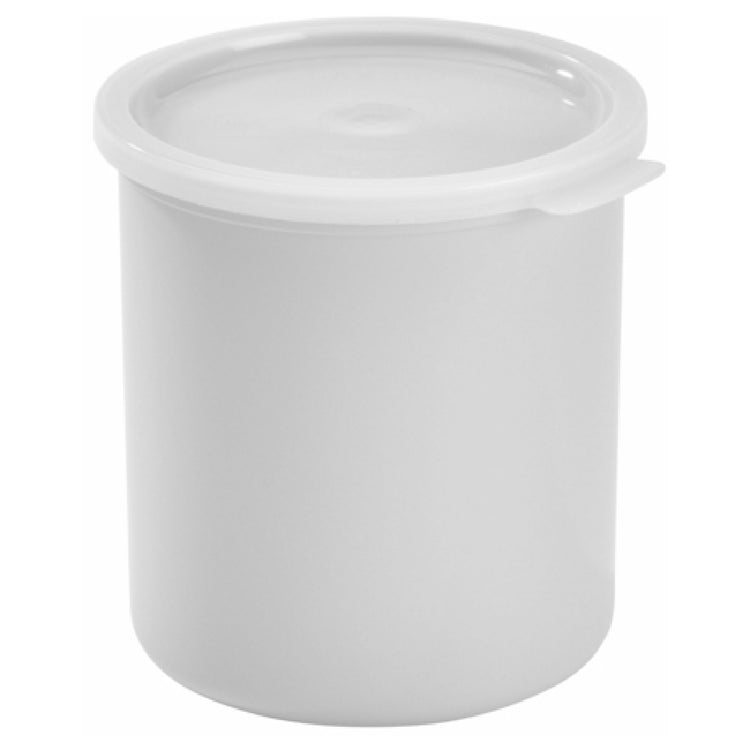 The Cambro CP27148 Crock 2.7 Qt. is a versatile storage solution for various kitchen environments, distinguished by its durable construction and practical design. With dimensions of 6-5/8" in diameter and 6-3/4" in height, this round crock is expertly crafted to hold a capacity of 2.7 quarts. It is made from high-quality polypropylene, ensuring both strength and longevity in demanding kitchen settings. The crock comes with a convenient polyethylene lid, providing a secure seal to maintain the freshness of your contents. Dishwasher safe, this crock offers ease of cleaning and maintenance, making it a practical choice for busy food service operations. Its white color allows for easy labeling and identification of stored contents. Additionally, this product meets NSF standards, underscoring its commitment to public health and safety requirements. The Cambro CP27148 Crock 2.7 Qt. serves the needs of different market segments, from restaurants and catering services to institutional dining facilities, offering a reliable and efficient storage option.