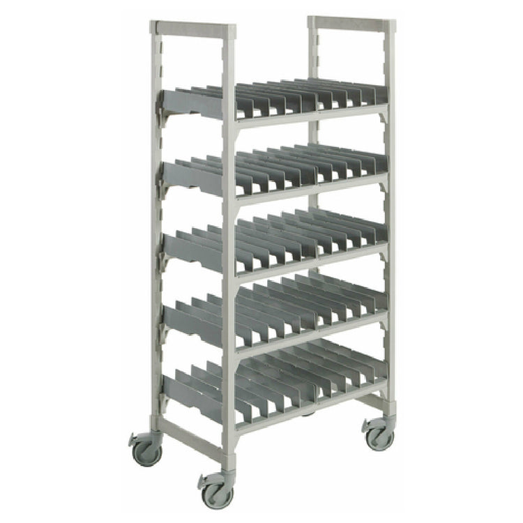 The Cambro CPMU243675DDPKG Camshelving® Premium Series Mobile Drying Unit is a versatile and robust solution designed for efficient drying needs across various industries. Measuring 24 x 36 x 75 inches, this mobile unit is engineered to support a maximum weight of 900 lbs. Its construction includes two factory-assembled post kits and ten dome cradles, providing ample space and support for drying tasks. The unit is equipped with four premium swivel total locking casters, ensuring smooth mobility and stability when in use. Finished in an aesthetically pleasing speckled gray, the unit seamlessly integrates into diverse settings. The components of the Cambro CPMU243675DDPKG are NSF listed, signifying adherence to stringent public health and safety standards. This mobile drying unit is ideal for sectors requiring meticulous hygiene and flexibility, such as food service, hospitality, and healthcare. Its design focuses on durability and ease of use, offering a reliable drying solution that's both mobile and efficient. The Cambro CPMU243675DDPKG represents a high-quality, practical choice for professionals seeking a dependable drying unit that meets industry standards and operational demands.