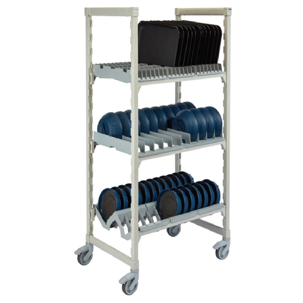 The Cambro CSDDC24151 Camshelving® Dome Drying & Storage Cradle is a specialized storage solution designed to enhance the organization and efficiency of professional kitchen environments. Measuring 23-1/2 inches by 16-1/3 inches by 3-3/8 inches, this cradle offers a compact yet effective design tailored for high-demand settings. Constructed from high-impact ABS, it ensures durability and resilience, making it suitable for rigorous daily use. The soft gray finish provides a subtle aesthetic that complements a variety of kitchen decors. This cradle features ten slots, offering ample space for drying and storing domes, which is crucial for maintaining cleanliness and order in professional food service settings. The cradle is NSF certified, which underscores its compliance with public health and safety standards, a significant consideration for maintaining high hygiene levels. This product is ideal for culinary professionals seeking reliable and efficient storage solutions, contributing to streamlined operations and organized kitchen spaces. The Cambro CSDDC24151 is a valuable asset for restaurants, catering services, and institutional kitchens, providing a practical approach to dome drying and storage while ensuring adherence to safety standards.