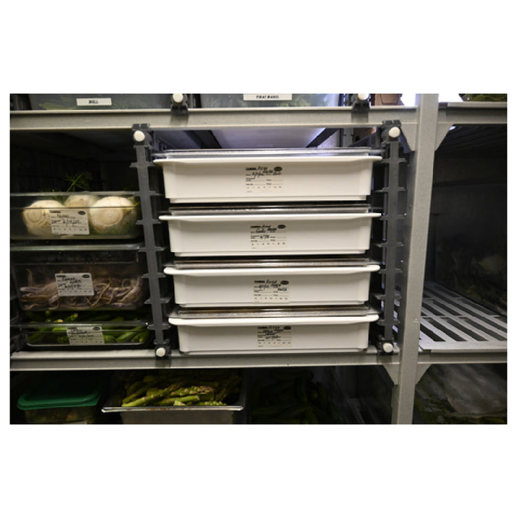 - Stores 4 full-size 4" pans or 18" x 26" pans
