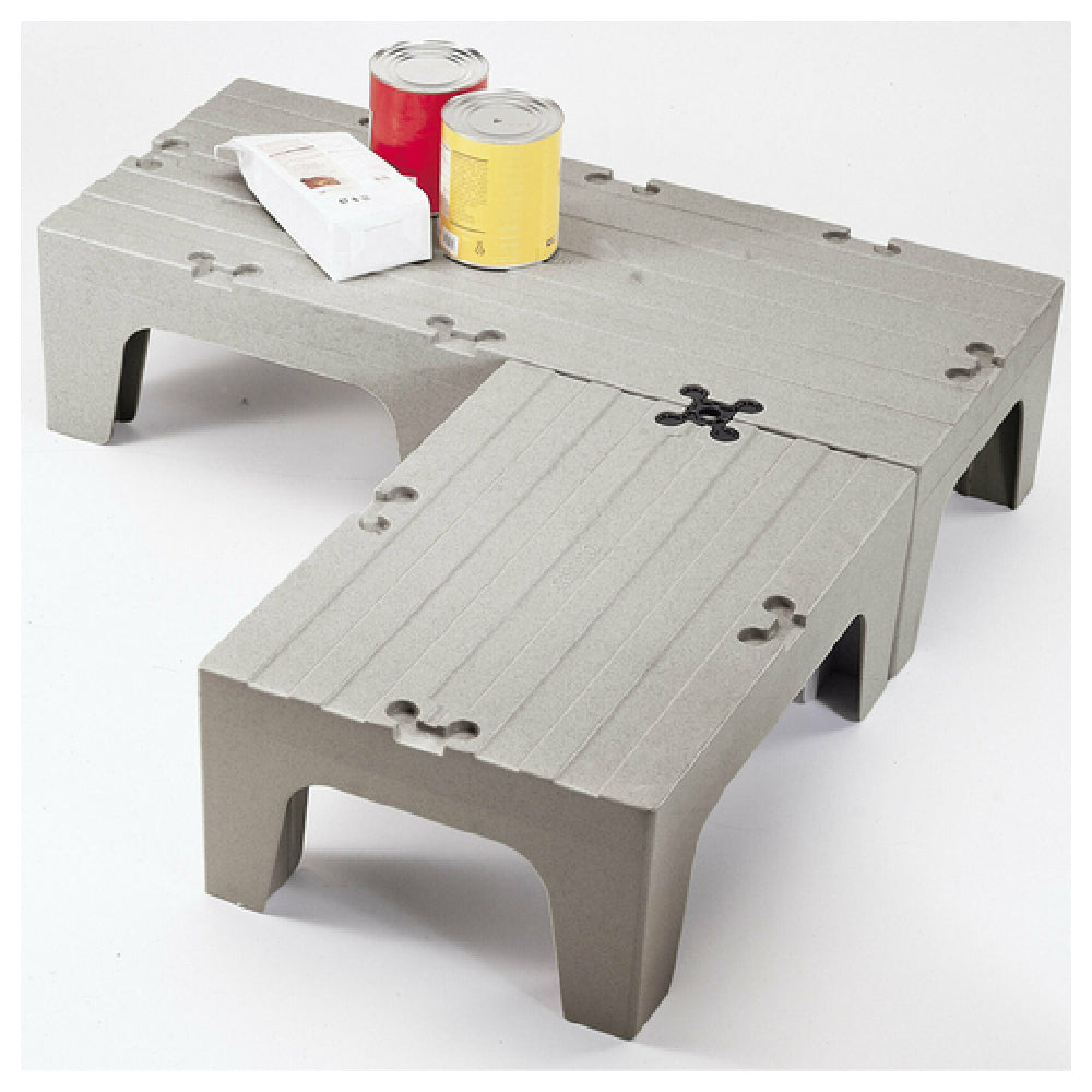The Cambro DRS36480 S-Series Dunnage Rack is a robust storage solution with a solid top, engineered to support a substantial load capacity of 1500 lb. Its dimensions are 21"D x 36"W x 12"H, making it suitable for various storage needs in the foodservice industry. Manufactured from durable polypropylene, the rack features a one-piece, seamless double wall construction that ensures long-lasting performance and easy maintenance. The S-Series Dunnage Rack includes a Camlink® for secure connections, enhancing its stability and usability. Its 4" square legs provide a sturdy base, ensuring that stored items remain off the ground, which is essential for maintaining hygiene and preventing contamination. The speckled gray finish offers a professional appearance, blending seamlessly into any kitchen or storage space. This product is NSF certified, indicating its compliance with rigorous public health and safety standards. The Cambro DRS36480 is ideal for commercial kitchens, restaurants, and other foodservice environments that require reliable equipment to store heavy loads safely and efficiently. Its thoughtful design and quality materials make it a valuable asset for maintaining organized and sanitary storage areas.
