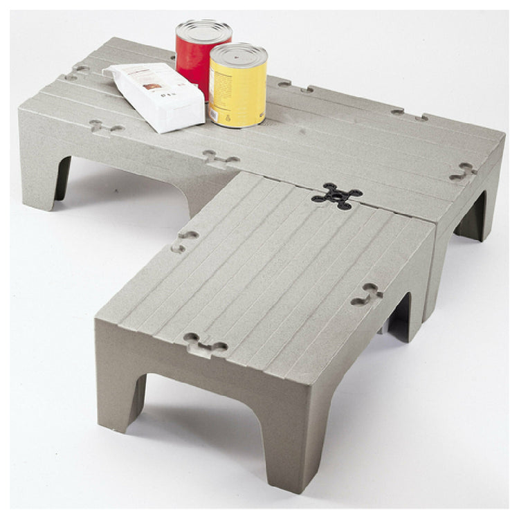 The Cambro DRS60480 S-Series Dunnage Rack Solid Top is a highly durable storage solution designed to meet the rigorous demands of various industries. Engineered with a remarkable 3000 lb. load capacity, this dunnage rack is suitable for heavy-duty applications, ensuring longevity and reliability. Measuring 21"D x 60"W x 12"H, it provides ample space for accommodating large quantities of goods, making it ideal for food service operations, warehouses, and retail environments. The one-piece, seamless double wall construction crafted from polypropylene ensures durability and resistance to impacts, enhancing the rack's lifespan. The inclusion of a Camlink® accessory offers added stability, while the 4-inch square legs contribute to its robust structure. The speckled gray finish not only adds an aesthetic appeal but also ensures the rack blends seamlessly into various settings. Certified by NSF, this dunnage rack adheres to strict public health and safety standards, making it a trustworthy choice for environments requiring high hygiene standards. Whether utilized in a restaurant, hotel, or industrial setting, the Cambro DRS60480 provides a reliable and efficient storage solution, emphasizing its commitment to quality and performance.