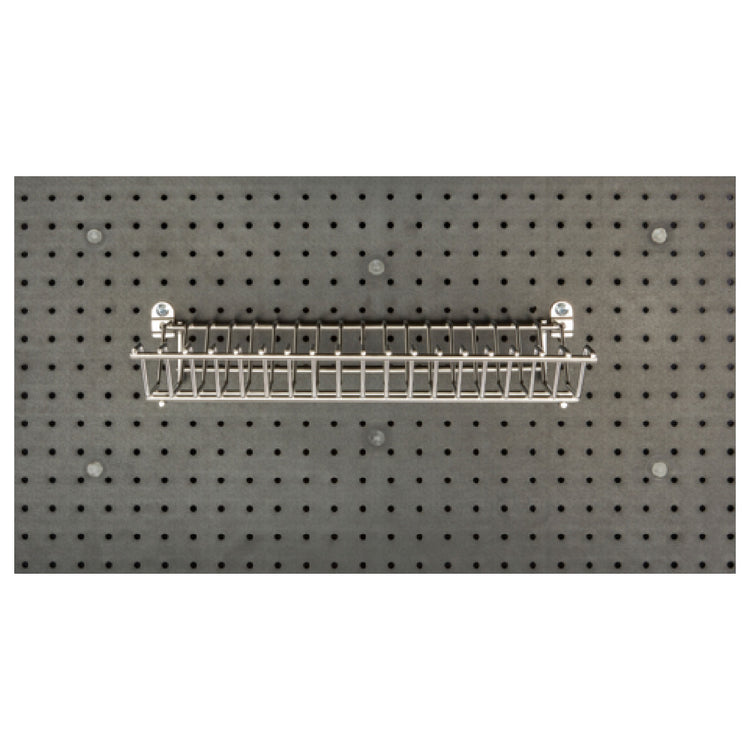 The Cambro EWSACC9000 Camshelving® Elevation Series Wall Shelving Wire Shelf With Lid Holder is a precision-engineered storage solution tailored for various industry segments, including food service and commercial kitchens. Measuring 14-3/4"-8-1/8"-3", this wall shelving unit is crafted from type 304 stainless steel, ensuring durability and resistance to corrosion, which is ideal for environments demanding stringent hygiene standards. It features a lid holder, enhancing its utility by providing organized lid storage, thereby optimizing space and ensuring easy access to essentials. The inclusion of screws for installation on a pegboard facilitates a straightforward setup, allowing seamless integration into existing storage systems. This product is NSF certified, affirming its compliance with public health and safety standards, which is crucial for operations that prioritize quality and reliability. The Cambro EWSACC9000 is designed to accommodate the unique needs of different market segments, offering a robust and efficient shelving solution that enhances operational efficiency and storage organization. Its compact design and versatile functionality make it an invaluable asset for maintaining organized and sanitary environments in professional settings.