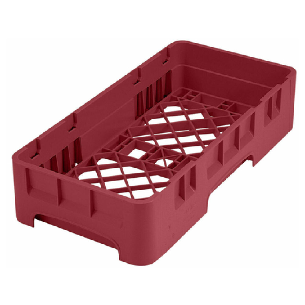 The Cambro HBR258416 Camrack® Base Rack Half Size - (1) Compartment is a versatile and essential solution for organizing and storing small batches of items in various industries. With an interior rack height of 19-3/4" x 9-7/8" and an inside and stack height of 3-1/4", this half-size compartment is constructed from durable polypropylene, ensuring longevity and reliability in demanding environments. The vibrant cranberry color adds an aesthetic appeal while assisting in easy identification. Certified by NSF, this rack adheres to stringent health and safety standards, making it suitable for use in food service industries where hygiene is paramount. Its compact size and efficient design allow for seamless stacking, optimizing space utilization in commercial kitchens, catering services, and other settings that require organized storage solutions. The Camrack® Base Rack is specifically designed to fit within existing systems, providing a streamlined workflow and reducing handling time. This product is ideal for businesses looking to maintain high standards of cleanliness and organization, ensuring that items are stored safely and efficiently. Whether used in kitchens, restaurants, or catering environments, the Cambro HBR258416 delivers reliable performance and contributes to the seamless operation of professional service environments.