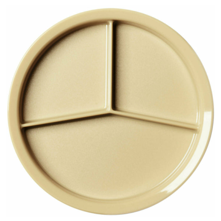 The Cambro HK93BCW133 Camwear® Heat Keeper Base is a meticulously designed product with a 9-1/2" diameter, featuring three distinct compartments, ideal for segmenting different food items. Its narrow rim design enhances ease of use, while the polycarbonate construction ensures a durable and long-lasting product. The non-porous surface of the Heat Keeper Base prevents absorption of liquids and odors, maintaining hygiene and integrity over time. Its smooth glossy finish not only gives it an elegant appearance but also contributes to its scratch-resistant properties, making it suitable for frequent and robust use in various settings. The textured surface provides an additional layer of protection against wear and tear, ensuring that the base remains in pristine condition. Available in a subtle beige color, this product is NSF certified, affirming its compliance with public health and safety standards. The Cambro Camwear® Heat Keeper Base is a versatile solution for food service industries, balancing functionality with durability, and is particularly valuable for establishments focused on maintaining high standards of food presentation and safety. Its design caters to sectors requiring efficient compartmentalization and reliability in food storage and service.