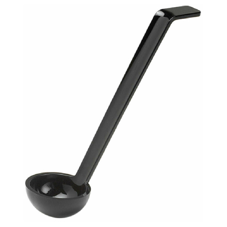 The Cambro LD85110 Camwear® Ladle is an essential tool for food service professionals, combining durability and functionality with its notable specifications. This ladle measures 8-1/2 inches in length, allowing for comfortable handling and precise portion control. With a capacity of 3/4 ounces, it is perfect for serving measured amounts of sauces, dressings, or gravies, making it an invaluable asset in kitchens where consistency is key. Constructed from plain polycarbonate, the ladle is not only lightweight but also resistant to breaking, making it a reliable choice for high-traffic environments. Its sleek black design offers a professional appearance that complements any kitchen decor. Certified by NSF, it meets the public health and safety standards, assuring users of its quality and safety. The Cambro LD85110 Camwear® Ladle is designed to meet the diverse needs of various market segments, including restaurants, catering services, and institutional kitchens, providing a combination of precision and durability that professionals in the food service industry demand. Its robust construction and compact size make it a staple for any kitchen aiming to achieve excellence in service and presentation.
