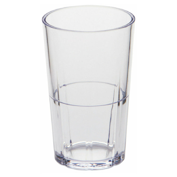 The Cambro LDT5152 Lido® Tumbler 5 Oz. stands as a versatile choice for various sectors within the food service industry, distinguished by its blend of durability and practicality. With a top diameter of 2-5/16 inches, this tumbler is compact yet efficient, making it suitable for both casual dining settings and high-traffic environments. Its 3-11/16 inches height offers a convenient size for serving beverages while minimizing storage space. Constructed from impact-resistant plastic, this tumbler ensures longevity in bustling restaurant or cafe settings, where durability is paramount. The integrated interior stacking ring enhances organization and space-saving storage capabilities, ideal for establishments that prioritize efficiency. Dishwasher safe, it supports quick and hygienic cleaning processes, essential for maintaining high sanitation standards. Made from SAN (styrene acrylonitrile), the tumbler is clear, allowing for an attractive presentation of beverages while enabling easy identification of contents. Furthermore, its NSF certification confirms compliance with stringent safety and quality standards, providing assurance to businesses focused on health and safety. The Cambro LDT5152 Lido® Tumbler combines functionality with aesthetic appeal, making it an excellent choice for any food service operation seeking a reliable and professional beverage serving solution.