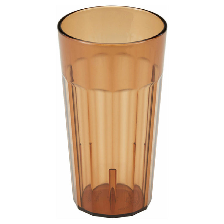 The Cambro NT16153 Newport Tumbler is a versatile and durable drinkware solution, ideal for various hospitality sectors including restaurants, hotels, and catering services. This fluted tumbler has a capacity of 16.4 oz., providing ample space for serving a variety of beverages. It features a top diameter of 3-1/4 inches, designed for comfort and ease of use. Constructed from impact-resistant plastic, the tumbler ensures longevity and resilience in high-traffic environments. The inclusion of interior stacking lugs allows for efficient storage and organization, optimizing space in busy service areas. A Sani-Rim lip design enhances hygiene and provides a safer drinking experience. The tumbler is dishwasher safe, ensuring convenient and thorough cleaning between uses. Made from SAN (styrene acrylonitrile resin), it offers excellent transparency and a polished finish, with an amber hue adding a touch of elegance. The Cambro NT16153 Newport Tumbler is a practical choice for any establishment seeking a balance of style, functionality, and durability in their drinkware collection.