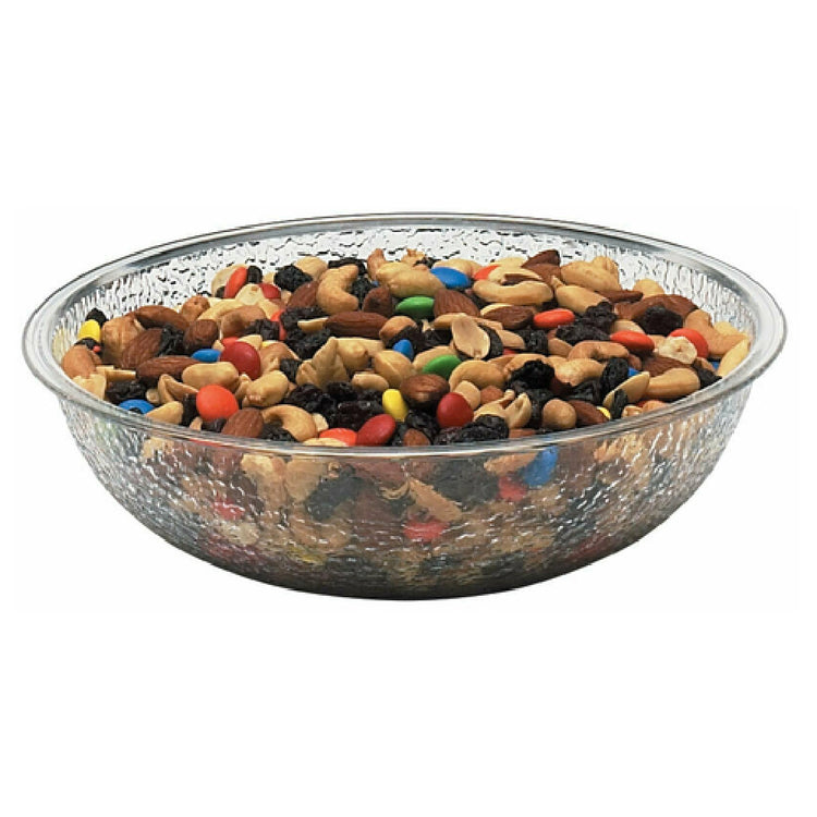 The Cambro PSB8176 Camwear® Salad Bowl - 1.6 qt. - 8" Dia. is a meticulously designed round salad bowl, ideal for a variety of industry applications. Crafted from durable polycarbonate, this bowl is break-resistant, ensuring longevity and reliability in both commercial and domestic settings. The bowl's pebbled exterior provides an attractive visual appeal, while the smooth interior facilitates easy cleaning and maintenance, essential for busy food service environments. With a capacity of 1.6 quarts and an 8-inch diameter, it is perfectly sized for individual servings or small group settings, making it versatile for different market segments, from restaurants and catering services to home use. This product is NSF certified, highlighting its compliance with rigorous safety and health standards, which is crucial for professional use. The Cambro PSB8176 is not only a practical choice with its robust construction and thoughtful design but also an aesthetically pleasing addition to any tabletop presentation. Its durability and high-quality materials make it a trusted choice for those seeking reliability and style in their service ware.