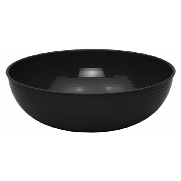 The Cambro RSB23CW110 Camwear® Bowl is a high-capacity, robust solution designed for both professional and industrial settings, with a notable volume of 40 quarts. This bowl features a diameter of 22-7/8 inches and is crafted in a round, ribbed design that adds both aesthetic appeal and functional grip. Constructed from durable polycarbonate, it ensures longevity and resistance to damage, making it suitable for repeated use in demanding environments. The bowl is dishwasher safe, allowing for easy and efficient cleaning, thereby reducing maintenance time and effort. Available in a sleek black color, it complements various kitchen themes and setups. Additionally, the Cambro RSB23CW110 is NSF certified, confirming its compliance with public health and safety standards. This certification is vital for food service professionals looking to maintain high hygiene standards. Its unique combination of size, durability, and safety certification makes it ideal for catering services, large-scale food preparation, and storage needs in restaurants and cafeterias. This bowl represents a versatile choice in the food service industry, providing reliable performance and efficiency for diverse market segments that demand quality and resilience from their kitchenware.