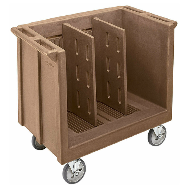 The Cambro TDC30157 Dish Cart is a versatile and efficient solution designed to meet the diverse needs of food service establishments. Measuring 23-1/4 inches wide, 38-7/8 inches long, and 34-1/2 inches high, this adjustable dish cart is engineered for optimal space utilization and organization. It includes two dividers, allowing for customized compartmentalization to suit various dish sizes and types. With a maximum load capacity of 500 pounds, this dish cart provides robust support for heavy service demands. It features four 6-inch swivel casters, two of which are equipped with brakes, ensuring both mobility and stability within bustling kitchen environments. The cart's polyethylene construction ensures durability and resistance to wear and tear, while its coffee beige finish adds a professional touch to any setting. Additionally, the Cambro TDC30157 includes a vinyl dust cover, protecting dishes from contaminants and maintaining hygiene standards. This dish cart is NSF certified, affirming its compliance with public health and safety requirements. Ideal for restaurants, hotels, and catering services, the Cambro TDC30157 Dish Cart offers a practical and reliable dish transportation and storage solution, enhancing operational efficiency and maintaining the highest standards of cleanliness.
