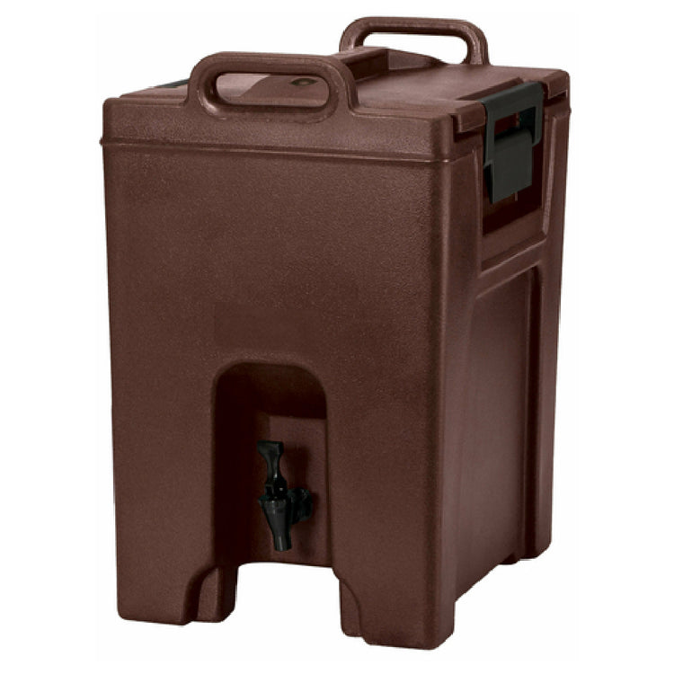 The Cambro UC1000131 Ultra Camtainer® Beverage Carrier stands out as a high-capacity solution for beverage transport, offering a substantial 10-1/2 gallon capacity. Measuring 16-1/4 inches in width, 20-1/2 inches in depth, and 25-3/4 inches in height, this carrier is designed to accommodate large volumes efficiently. Constructed from durable insulated plastic, it ensures optimal temperature retention, making it an indispensable asset for catering businesses and event organizers. The dark brown color adds a professional appeal, blending seamlessly into various service settings. This carrier is NSF certified, indicating its compliance with public health standards, thus providing peace of mind regarding hygiene and safety. Its robust construction and reliable insulation make the Cambro UC1000131 ideal for a wide range of industries, including hospitality, catering, and institutional settings that require consistent beverage service quality. Whether it's for outdoor events or indoor catering, this beverage carrier's design and functionality cater to the demands of busy service environments, ensuring beverages are served at the desired temperature. Its practical dimensions and technical specifications underline its suitability for professionals seeking a dependable beverage transportation solution.