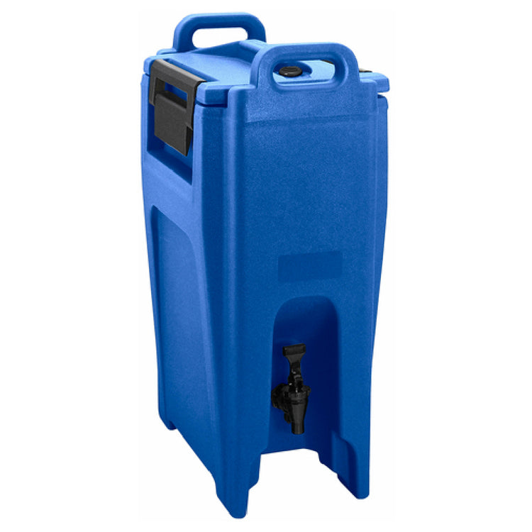 The Cambro UC500186 Ultra Camtainer® Beverage Carrier is a highly durable and insulated plastic container designed for the efficient transport and storage of beverages. It boasts a capacity of 5-1/4 gallons, making it a perfect choice for catering services, large gatherings, or any setting that requires reliable beverage service. With dimensions of 11-3/4 inches in width, 16-3/4 inches in depth, and 26-5/8 inches in height, this carrier is engineered to provide ample storage while remaining compact enough for convenient handling and transport. The navy blue finish adds a professional and polished aesthetic, ideal for various event settings. Certified by NSF, it aligns with public health and safety standards, ensuring that your beverages are kept in optimal condition. The Cambro UC500186 is specifically designed for thermal retention, maintaining the temperature of both hot and cold beverages for extended periods, a crucial feature for industries such as catering, hospitality, and event planning. Its robust construction and thoughtful design make it a valuable asset for professionals seeking reliability and quality in beverage transportation. This feature-rich product ensures that beverages are served fresh, making it an indispensable tool for any beverage service operation.