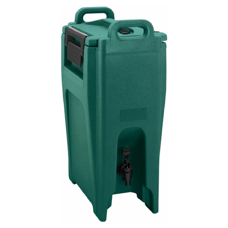 The Cambro UC500519 Ultra Camtainer® Beverage Carrier is a high-quality solution for transporting beverages, designed with an impressive capacity of 5-1/4 gallons. Its dimensions are precisely 11-3/4 inches in width, 16-3/4 inches in depth, and 26-5/8 inches in height, providing a compact yet substantial space for optimal beverage storage and transport. Crafted from insulated plastic, this Camtainer guarantees excellent temperature retention, making it an ideal choice for catering services, event organizers, and foodservice professionals who need reliable and efficient beverage transportation. The Kentucky green color adds a distinct and professional appearance, suitable for various settings, from casual gatherings to formal events. This beverage carrier is NSF certified, ensuring compliance with rigorous public health standards and reinforcing its credibility as a safe and dependable option for any beverage service requirement. The Cambro UC500519’s robust construction and user-friendly design make it a versatile asset in the beverage transport industry, appealing to a wide range of market segments, including restaurants, hotels, and catering companies, all benefiting from its durability and practicality.