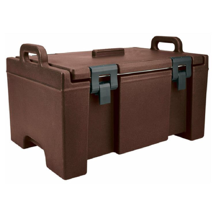 The Cambro UPC100131 Ultra Pan Carriers® is a top-loading unit designed to accommodate (1) GN full-size or fractional pans, providing flexibility for various kitchen needs. With the capacity to hold pans up to 8 inches deep, it offers an approximate volume of 40 quarts, making it suitable for both small and large-scale food service operations. The carrier ensures excellent temperature retention, maintaining hot contents between 190°F and 179°F, and cold contents between 33.9°F and 35.8°F, for up to four hours each. This makes it ideal for catering events and food delivery services. Featuring (4) E-Z grip molded-in handles and (4) nylon over-center latches, it’s designed for ease of transport and secure closure. The removable gasket and self-venting design add to its practicality, while being dishwasher safe adds convenience in terms of cleaning. Constructed from durable polyethylene with a scratch-resistant textured exterior, the unit boasts a one-piece seamless, double-wall design filled with polyurethane foam insulation for superior durability and insulation. Available in a dark brown color, the Cambro UPC100131 is NSF certified, ensuring it meets public health and safety standards, and is a reliable choice for professionals in the food service industry.