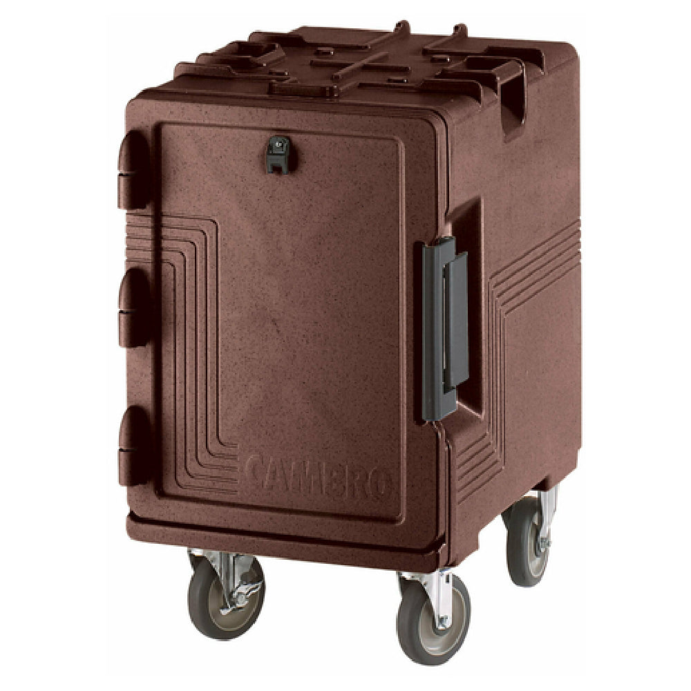 The Cambro UPCS400131 S-Series Ultra Pan Carrier® is a front-loading, one-piece poly shell container designed for superior thermal retention and transportability in food service operations. With high-performance polyurethane insulation, this pan carrier effectively maintains the temperature of stored food, catering to the needs of catering services and commercial kitchens. It accommodates a variety of pan sizes, including 1/2, 1/3, and full-size pans ranging from 2-1/2" to 8" deep, boasting an approximate capacity of 60 quarts. The design incorporates molded-in handles that ensure ease of handling and transportation, while the nylon latch provides secure closure. A built-in seal eliminates the need for a gasket, enhancing its durability and ease of maintenance. Additionally, the vent cap allows for optimal pressure regulation during transport. This stackable carrier is dishwasher safe, making it convenient for regular cleaning. Its dark brown color offers a professional and understated appearance. The Cambro UPCS400131 S-Series is NSF certified, ensuring it meets rigorous public health and safety standards. This product is an ideal choice for operations seeking a reliable solution for maintaining food quality and safety during transit.
