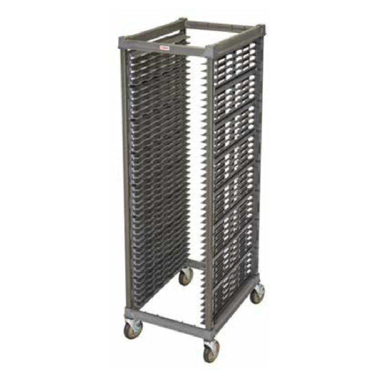 The Cambro UPR1826F40580 Ultimate Sheet Pan Rack is a full-size unit with dimensions of 25-1/2W x 32-1/6"L x 71-7/8"H, designed to efficiently maximize storage and organization in professional kitchens. With 1-1/2" rail spacing and molded positioning ribs, this rack accommodates up to 40 full-size Camtrays® (1826) or 80 half-size Camtrays® (1318), providing versatile storage options depending on your needs. Its robust design supports a weight capacity of 55 lbs. per shelf and a total of 350 lbs. per rack, ensuring stability and durability. The unit operates effectively in a temperature range from -36°F (-38°C) to 190°F (88°C), making it versatile for various kitchen environments. The rack features two locking and two non-locking 5" center-stem non-marking metal swivel casters, allowing for easy maneuverability and secure positioning. Constructed from composite plastic with a brushed graphite finish, the Cambro UPR1826F40580 not only offers functional excellence but also a sleek design. This sheet pan rack is an essential tool for any food service establishment seeking reliable and flexible storage solutions, catering to diverse segments within the industry.